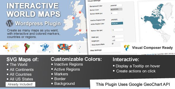 Interactive World Maps is a premium WordPress plugin that helps you create as many geolocation maps as you want, continents, countries or regions... with interactive and colorful markers.